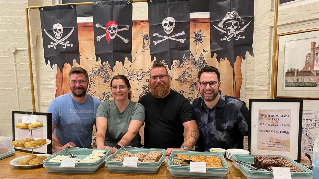 Pictured are James Davis, Amy Allen, Daniel Allen and Tom Golds selling cakes and teas to the pirates on Sunday